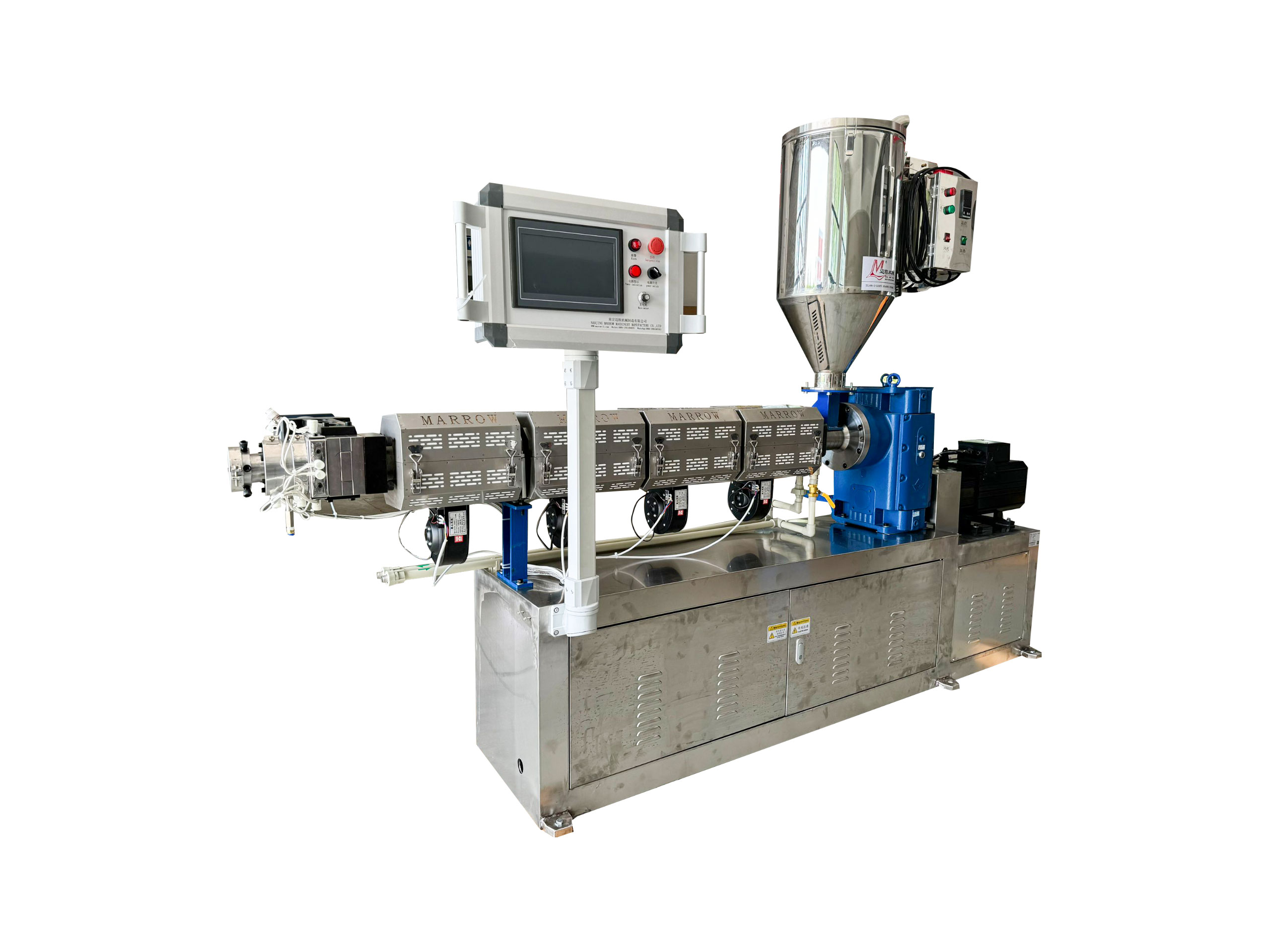 真正不認(rèn)料的PLA吸管擠出機(jī)、長(zhǎng)徑比33:1、采用BM分離型+菠蘿釘專利螺桿